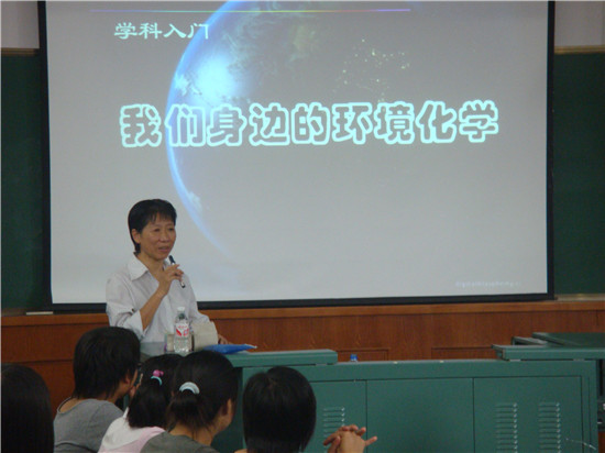 袁教授主要为我们讲解了什么是环境化学以及我们身边的环境化学。她说,环境化学具有复杂性、综合性、精细性的特点,还给我们展示了许多近年来出现的环境问题以及各种环境问题对我们产生的影响,其中包括餐桌污染,三鹿奶粉事件,水体污染以及各种疾病的形成等。她生动而精彩的介绍赢得了同学们热烈的掌声。同学们也体会到了环境化学与我们的生活是息息相关的。