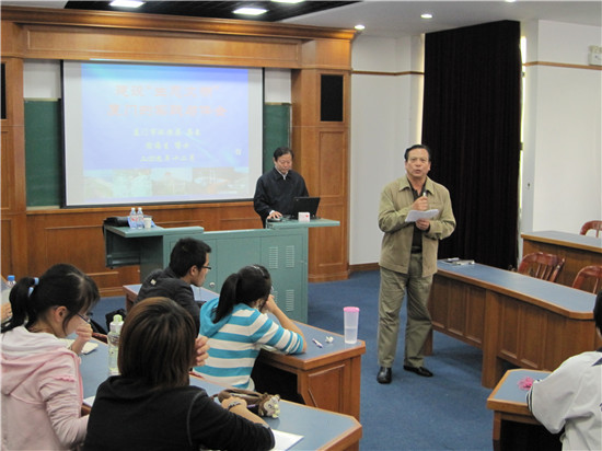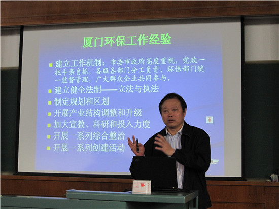 12月3日下午,厦门市环保局局长、厦门大学客座教授谢海生博士为环境科学与工程系09级新生做学科入门指导讲座。在系主任卢昌义教授作完热情洋溢的欢迎致辞之后,09级新生们聆听谢教授精彩生动的演讲。