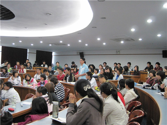 继而,谢海生教授为09级新生细细地讲解了厦门市环境发展史。他提出厦门是典型的亚热带海洋环境,水生生物和陆生生物多样性丰富,生态系统结构复杂。其中就有国家一级保护海生动物中华白海豚(又名‘妈祖鱼’)。谢教授又介绍到厦门环境保护的曲折历程。厦门是1387年建成的(即明洪武20),之后依次经历了“海防重镇”、“八闽门户”、“大炼钢”等事件,造成了大面积原始林的毁灭性破坏,再加上暴雨的冲刷使得土地石漠化;筑坝修路、围海造田缩短海岸线等造成了海域淤积和水体污染;化肥的大量使用令水体富营养化。在改革开放的前期和初期,厦门市还是烟囱林立、浓烟滚滚,污水横流、垃圾围城的,甚至于90年10月的全国首次卫检中处于倒数第二名。然而之后则正确的选择了走经济和环境相结合的双赢而取得了环保的辉煌成就。如建设工作机制、健全法制、合理制定规划和区划、开展产业结构调整和升级、加大宣传、科研和投入力度、开展一系列的综合整治和创建活动等。