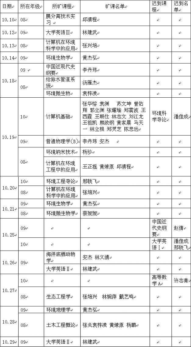 备注:旷课一次扣0.2u,累计迟到3次算一次旷课;一学期旷课累计达到20学时给予警告处分,累计30学时给予严重警告处分,达40学时给予记过处分,达50学时给予留校查看处分,以上处分均装入档案。旷课超过三分之一学时,该门课程需重新修读。希望大家予以重视!