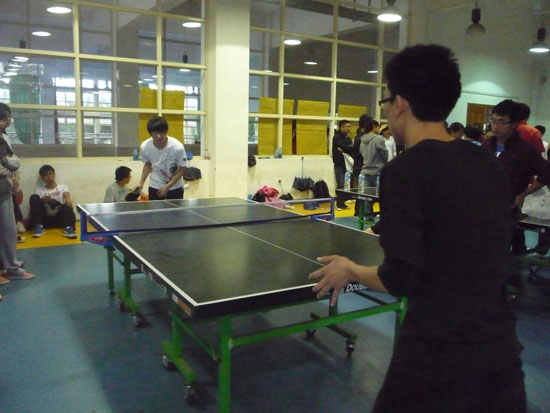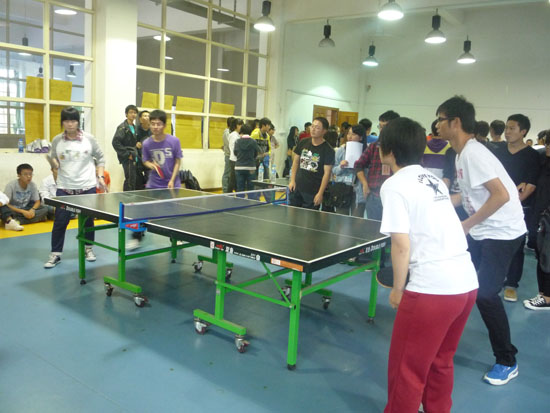 2012年12月1日14: 30,天气稍有晴好的午后。风雨球馆内环境科学与工程系迎来了与物流管理系的乒乓球赛。本次比赛环境科学与工程系团总支学生会的各个部门都有部员到场加油助威,物流管理系的啦啦队也颇具阵势。