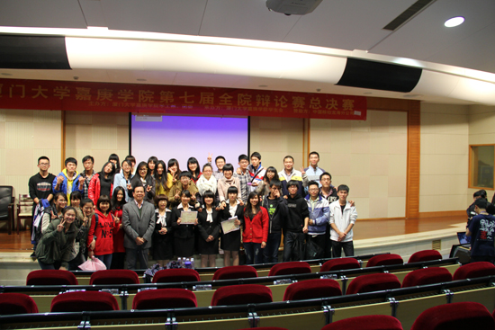 12月27日晚上七点,院辩论赛决赛在嘉庚学院的小报告厅内如期举行。学工部部长姚祖婵、团委副书记张媚、人文与传播学院朱盈蓓老师、法学院黄章令老师、电子工程系龚学峰老师、国际经贸系关书乐老师以及院系的行政秘书及辅导员到场观看了总决赛。