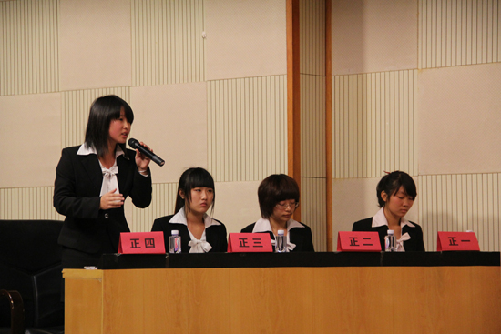 主持人开场后,双方分别开篇立论。正方论点是“正义有利于法律制度的完善,有利于道德的进步,推动社会的发展。”并引经据典,例举了布鲁诺、孙志刚等多种案例论证。反方的论点是“正义具有时效性。迟来的正义无法捍卫其职责,恰恰说明对当事人已经造成了伤害。”紧接着一个环节接着一个环节,双方辩手争锋相对,犀利的措辞让台下掌声不断,气氛达到了最高点。比赛十分精彩。在总结陈词阶段,双方四辩再次从各个角度论证了己方的观点,并指出对方漏洞,出色的表现给观众留下了深刻的印象。