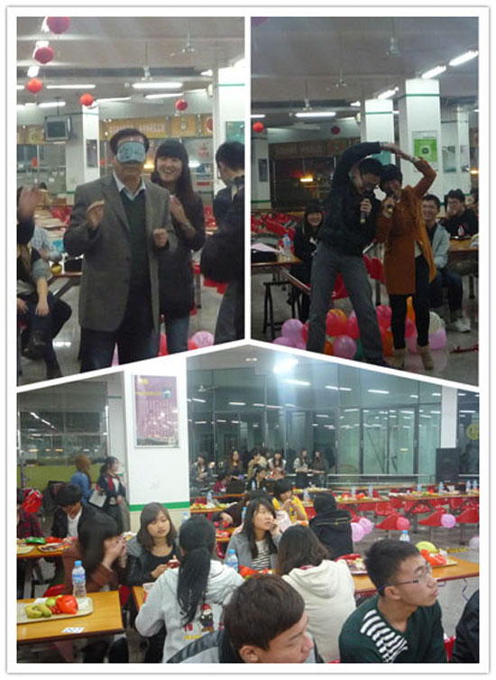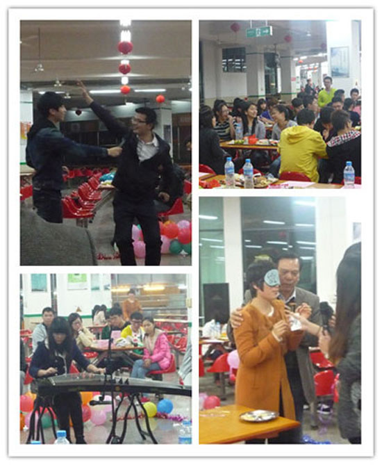 在活动期间,玩游戏是不可忽视的精彩环节。每位同学在进入食堂的时候每人都会抽一张扑克牌。主持人抽出幸运观众,蒙住观众的眼睛,让他们品尝味道并猜出他们吃到的是什么特产。答错的同学有相应的惩罚,而后请带这些特产的人解释这些特产的由来或制作过程。辅导员张晶老师猜出了鱿鱼丝,环科系系主任卢昌义教授更是迅速猜出了一样其他特产,包括该特产的场地也是一清二楚,同学们纷纷感慨到不愧是主任。游戏后,大家开始猜字谜,答对有卡贴赠送。与此同时,热腾腾的汤圆出锅了,每个人的脸上都挂着笑容。