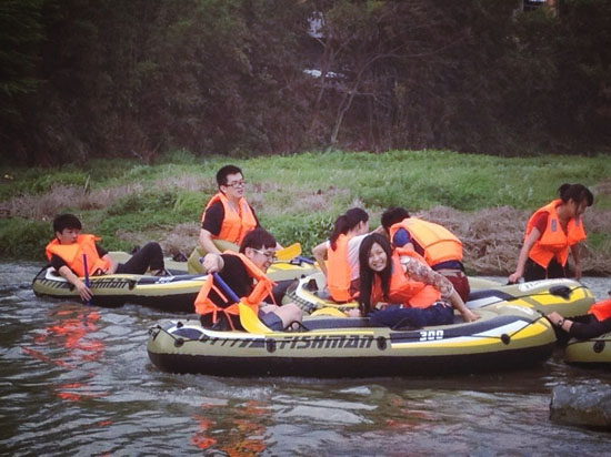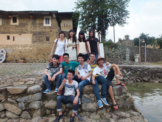 漫长的路途中同学们并不感到枯燥。在车上有的在打牌,有的在玩桌游,一路欢声笑语,很快“云水谣”到了。在别具风格的土楼宾馆下榻,同学们便开始享用老板准备的风味午饭。中午略微小憩,景区的游玩开始了。同学们分成了几波,有的同学玩了水上气球,有的同学参观了土楼。最后大家都上了充气艇划船,戏起水来,虽然大家都湿透了,但是同学们的心也都开心透了。在欢乐中,同学们的感情越发融洽。