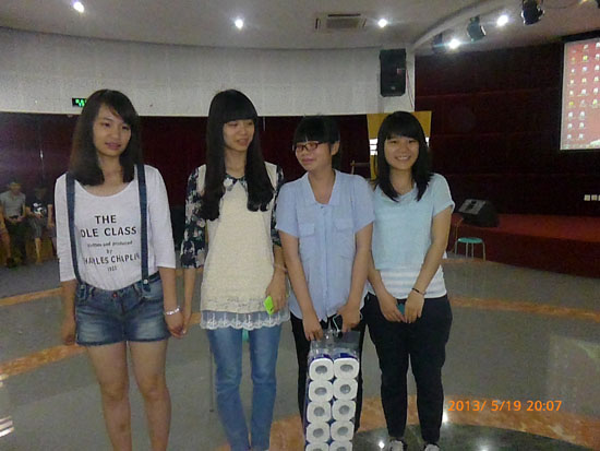 当然比赛的结果几家欢喜几家愁,主持人马上安慰其他成员不要泄气,挑战第二关“一战到底”。游戏规则如下:四人为一组,各宿舍派一名代表,以八支队伍为一个单位进行答题,第一轮选取两间宿舍进入第二轮比赛,第一轮成绩累积到第二轮成绩,第二轮比赛取前三名进行奖品颁发。该游戏很有意义,能够考察同学们的知识面以及现场反应能力。