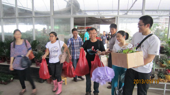 午餐后餐稍休息,我们去了苗圃,苗圃的大树种在砖头砌就的高出地面的土堆中,六月份,作为环科献礼学院十周年的十株木棉树就要从此处移栽至我院。最后,逛了百花村花卉市场,入宝山岂能空手而回!人人都挑选了中意的花卉。