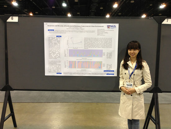 美国科罗拉多州丹佛市当地时间2013年5月18日至21日,我院环境科学与工程系2009级学生魏晴受邀参加第113届美国微生物学会(American Society for Microbiology)年会。魏晴向与会人员介绍了关于新加坡土壤环境中红霉素抗性基因的分布及多样性的研究进展,以及不同抗性基因之间的相关性研究,得到与会者的好评。魏晴同学的研究成果来自其在新加坡国立大学完成的本科毕业论文,她总结实验结果向美国微生物学会投稿,论文摘要被美国微生物学会接收,因而受邀参加本次年会。