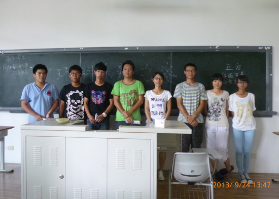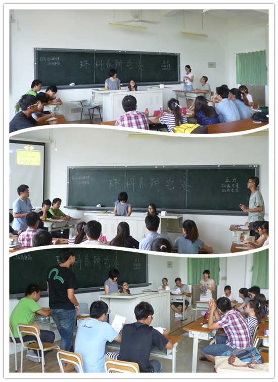 2013年9月24日中午12:30在公共一号教学楼举行了2013级环科系第一场辩论赛。本次辩论赛由我系的颜伟芳,高源,董榕华,张庆禹以及钟书翰同学担任评委, 詹子婷同学担任本次比赛的主持人。对阵双方分别为正方:瓶子队与反方:不告诉你队。