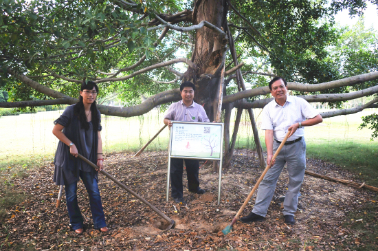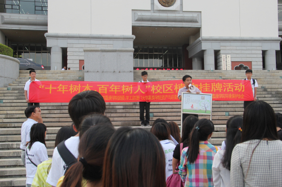 在厦门大学嘉庚学院十周年院庆到来之际,为向学院献礼,环境保护协会承办的“十年树木,百年树人”校区植物挂牌活动已准备就绪。10月18日下午4点,协会在南强广场展开了校区植物挂牌活动的启动仪式,参与仪式的有环境科学与工程系系主任卢昌义教授、教务部部长林斓老师和副部长李娜老师、招生办副主任张银平老师、环境科学与工程系的师生,以及其它部门和院系中有志于公益活动的老师和同学。