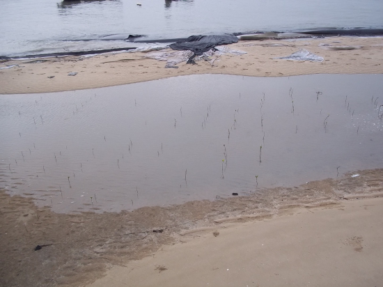 老师们一早便在厦门旅游码头集合出发前往五缘湾湿地公园。途中,老师们还考察了位于前埔会展中心沿岸一段的红树林重构工程,红树植物是潮间带植物,但水淹时间不宜过长,因此,在重构时对地基高度有一定的要求。然而遗憾的是,由于施工者没有按照科学规律办事,造成该工程的失败和经济损失。老师们亲眼目睹因填土过低,红树枝干上非常容易附着藤壶,不堪重负的红树大多已死亡;因围堰已破损,少数仍顽强生长的红树不得不面对更大的海浪冲击,命运堪忧。现实版的活生生的教材,加强了老师们做任何事情都必须遵照自然规律和尊重科学知识的认识。