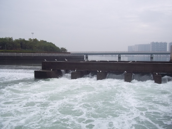 沿着环岛路继续前行,很快老师们便抵达五缘湾湿地。该湿地占地85公顷,面积相当于半个鼓浪屿,设有湿地生态自然保护区、红树林植物区、鸟类观赏岛、环湖休闲运动区等。它是厦门最大的公园,也是最大的湿地生态园区,被称为厦门的城市绿肺,是候鸟南北迁徙的重要驿站。考察时因适逢低潮位,在高潮时完全没顶的水坝此时露出水面,海水经水坝流入湿地,上下的落差使水流形成了小的“海水瀑布”,平常深藏不露的鱼儿也有机会暴光,由此吸引白鹭在此落脚觅食。另外,五缘湾湿地的木栈道,幽静而弯曲,鸟雀叽喳,植物繁茂,黑天鹅区是一大片湖水,亦有芦苇丛,小树林,黑天鹅三五成群在水中嬉戏游玩,很好的诠释了生态宜居的城市风貌。