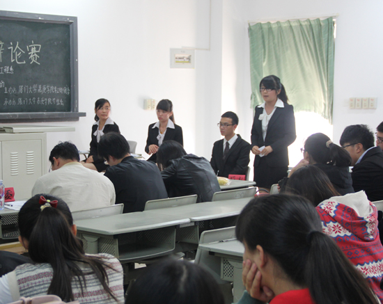 11月26日中午13:10,在厦门大学嘉庚学院公共教学楼一号楼#321教室展开了一场激烈的辩论大赛。参赛双方分别为正方:机电工程系,反方:环境科学与工程系。由欧光南副教授,财政金融系刘扬老师以及人文与传播学院张帆老师担任此次评委。双方围绕“评价行为善恶的标准是动机,不是效果”和“评价行为善恶的标准是效果不是动机”这一主题展开了一场激烈的唇枪舌战。