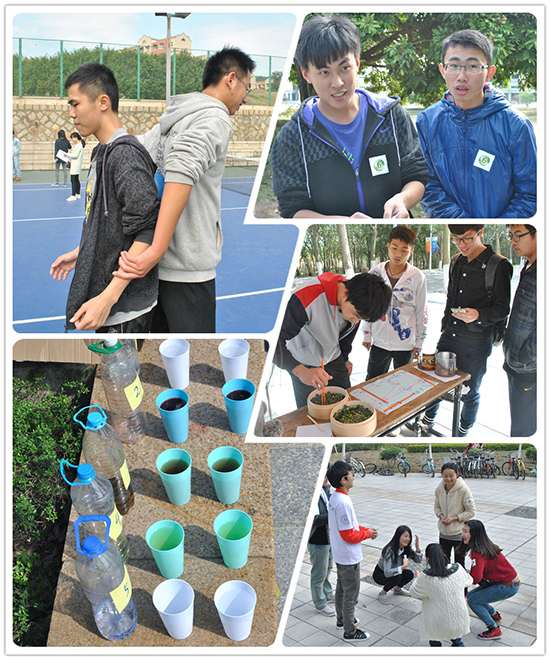 游戏是以3~5人为一组,共有六个关卡,每通过一个就会得到一张通关卡。游戏过程中,同学们团结互助,紧密配合,齐心协力地通过了一个又一个的难关。在青蛙跳游戏中,有的小组很顺利的过关,而有的小组却因为小小的失误导致重新来过,他们不灰心不放弃,最终完成任务。水之原味游戏里,每一种水的味道都是不一样的,酸、甜、苦、辣由抽签决定,之后要将满满一杯喝完。希望喝着这杯水的时候,同学们会想到水源的污染问题或者会开始节约用水。每一个游戏似乎都有一个环境问题隐藏其中,做完游戏之后慢慢体会,会有不一样的收获。