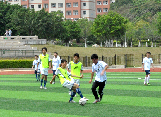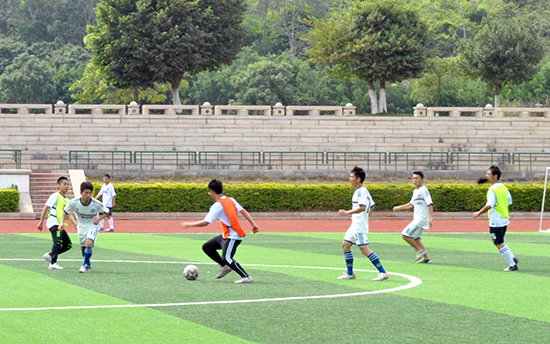 3月29日中午的校北区足球场上,院足球联赛B组的一场比赛在环科系与管理学院之间展开。虽然我系的后防中坚秦仁钰因伤缺席,但队员们还是顶住压力,以1:0的比分获胜。