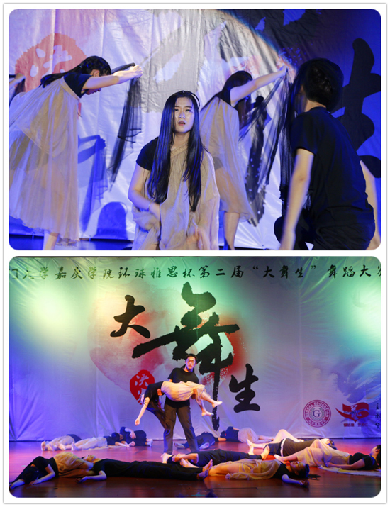 2014年4月3日晚7:00.厦门大学嘉庚学院主三大报告厅里,第二届“大舞生”舞蹈大赛决赛在同学们殷勤的期待下终于开幕了。到场嘉宾有漳州招商局经济技术开发区文化与旅游发展局副局长甘朝伟,厦门大学附属中学团委书记杨越,厦门大学嘉庚学院副院长戴一峰院长以及各院系辅导员与教师。评委有厦门大学嘉庚学院音乐系专任教师郑彬彬老师,中国舞蹈家协会会员陆建英老师以及高芬珊老师等。本次比赛分为两个环节,分别是群舞表演和技术技巧展示,两个环节得分相加为最后总分。