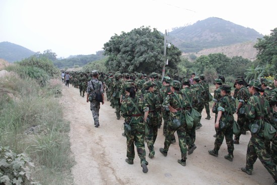 尽管赤日当空,环科系14级新生依然坚持不懈,努力前行。进入山路后,东升的太阳,翠绿的树林,一条看起来没有尽头的山路,山中的景物一一呈现在大家眼前,其中最令人兴奋的是最后一个训练项目——模拟战争场景。小战士们卧倒,躲在掩体旁边,手拿着湿毛巾掩住口鼻,闪躲“空袭和毒气弹”。馒头、榨菜、白开水,简单的早饭此时在他们眼中也是美味佳肴。他们一路高歌,高呼口号,精神抖擞,步伐整齐,展现了新一代大学生的最佳状态。值得一提的是,我系辅导员暨军训十九连指导员张晶老师陪着他们一路前行,为他们送去鼓励。