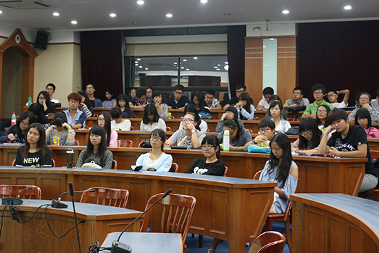 2014年10月15日星期三晚上19:00环境科学与工程系第三次学科专业入门指导在人文楼B#301拉开帷幕,参加会议的有袁东星教授,马嫱博士,2014级环科系同学。