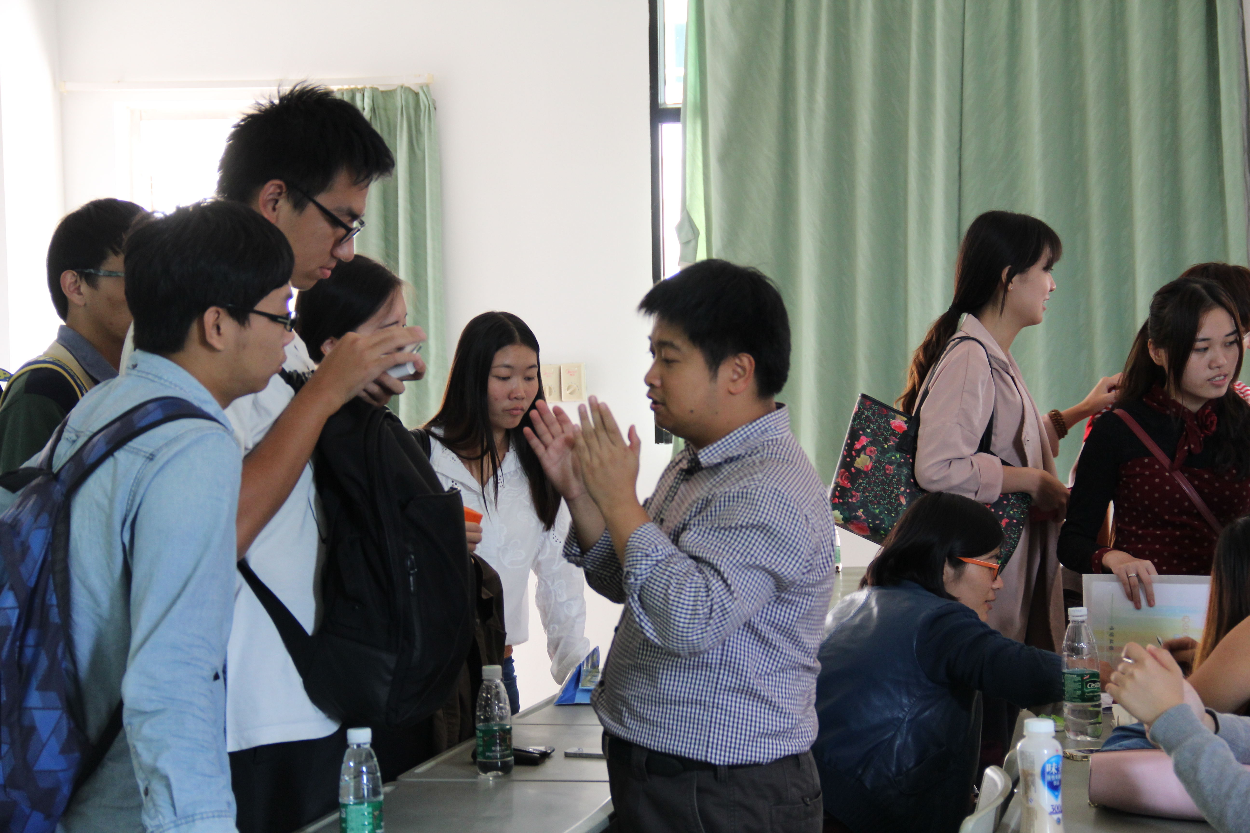 接着,周亮老师为大家讲解参赛的各项事宜。首先,周亮老师分享了以前所取得的成果;接着周亮老师介绍了我们系的情况,分析了我们的优势所在,以及告诉各团队应该要创新,以新为主;最后周亮老师说明了如何去寻找各方面的支持和如何去申请专利。环科系的老师都是经验十分丰富的,相信在老师们的指导下,各个团队会有更好的表现。