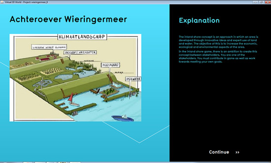 150名来自不同国家的学生参加了本届比赛,我院国际交流生,来自环境科学与工程系的吴筱恰好在Tygron公司实习,她的队伍根据荷兰水务局的客户提出的“环境友好型农田设计”理念,制作了名为“内陆概念严肃游戏”的作品参赛。荷兰水务局的目的在于模拟真实建设情况,减小风险,同时获得投资商的支持及其他人的意见。该游戏使用客户农场所在地的真实地图,模拟农田建设,通过不断的走访调查、会议咨询,将客户在实际建设中所经历的过程和存在的问题体现在游戏中,荷兰水务局将利用这个游戏加强与投资商和学习者的交流,并从不同玩家中获得更多的建议和想法。