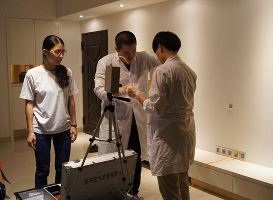 队员们正在进行空气质量检测