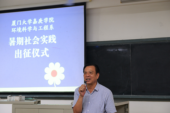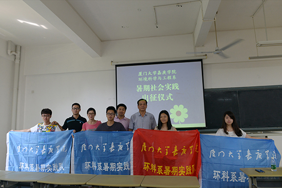 7月27日中午,环境科学与工程系暑期社会实践出征仪式在经管210举行,参加活动的有环境科学与工程系卢昌义主任,黄金阳老师,周亮老师,张帆老师,崔兴老师,张晶辅导员,孟靖岳辅导员及各暑期社会实践队队长和队员代表。