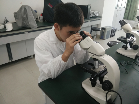 操作:同学们将辛苦制好的样本放在电子显微镜下观察,放大4倍、10倍、40倍,只为在密密麻麻排列的细胞中,寻找神奇的微核。在显微镜观察过程中,同学们请教老师,如何判断细胞核和微核,同学们的好奇心与求知心表现得淋漓尽致。