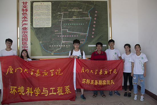 与此同时,Rubber.D团队另一小分队也开始对周边居民进行挨家挨户的走访调研,以望获得更多居民对红树林保护的看法。期间,队员们受到一名热心居民大叔的邀请,大叔细心的为队员们讲述了红树林保护区建设后的良好效益,他说:“自从红树林保护区建立以后,使本地的水质变得更加适于海产品的养殖,所以决定了本地的主要养殖业为虾蟹贝类及黄鳍鲷鱼等,并且红树林为这里提供了清新的空气。”通过一一走访交流,居民们都对红树林带来的良好效益给予了高度肯定。此外队员们还走访了当地的相关管理部门:甘文农业开发区,与场长进行了密切交谈,获取团队调研所需的资料,并于最后合影留念。