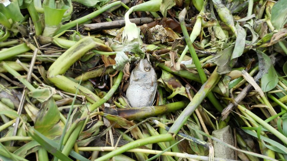 水葫芦中夹杂着死鱼