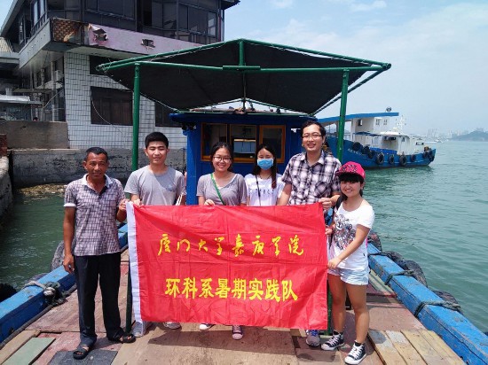 8月5日,环境科学与工程系暑期社会实践队Super Fish团队在指导老师孙鲁闽老师的带队下前往厦门市第一码头,乘渔船出海采集第一码头海域水样,检测水体中重金属含量。