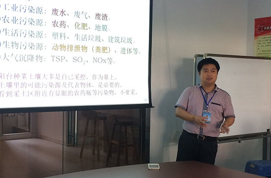 作为本次讲座的主讲人,周亮老师就土壤环境污染的基本概念、影响农产品安全的因素及厦门买菜的安全性三个方面进行演讲。他提到:土壤来源问题是影响阳台种菜土壤环境质量的重要或主导因素,自家阳台种菜土壤大多是自己采挖,作为基土,了解土壤里的可能污染源及代表物体是必要的,同时,周亮老师提醒道:看到采土区附近有显眼的农药瓶等污染物时不要采土。针对厦门农夫屋顶绿化推广中心成员对于土壤污染物超标是否表示种植作物超标的问题,周亮老师认为,这二者并不等同,就厦门买菜的安全性也给出了肯定的答案,打消了交流成员的疑虑。