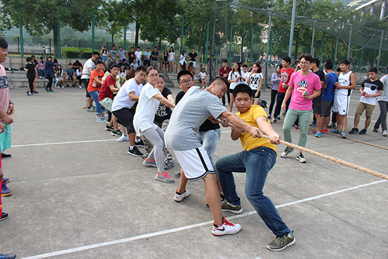 此时已是10月底接近11月,嘉庚的气候也渐渐转凉,却减少不了参加拔河比赛的同学们的激情,前来助威的同学也忘情地为他们的班级呐喊助威,场面热闹却不混乱,参赛选手有条不紊地上场比赛。拉开比赛序幕的班级是15级环科1班和14级环科1班,随着裁判的哨声吹响,双方队员都使出全身的力气向后拉。而有经验的14级环科1班同学在一旁助威同学的“一,二,一,二”声下有节奏的将力气使在一个点上。最终14级环科1班率先找到默契点,拿下开门红。