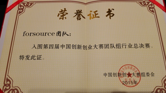 11月17-21日,2015第四届中国创新创业大赛电子信息行业总决赛在苏州举行。我校“Forsource”团队参赛,是电子信息行业总决赛团队组福建赛区唯一代表。经过激烈争夺,团队成员名列半决赛团队组第15名,荣获国赛入围奖。