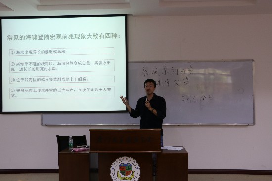 2015年12月2日星期三下午14:50,在经管#208环境科学与工程系开展了有关海洋灾害的讲座,主讲人是环境科学与工程系的金亮副教授。这场讲座吸引了不少学生,教室里座无虚席。