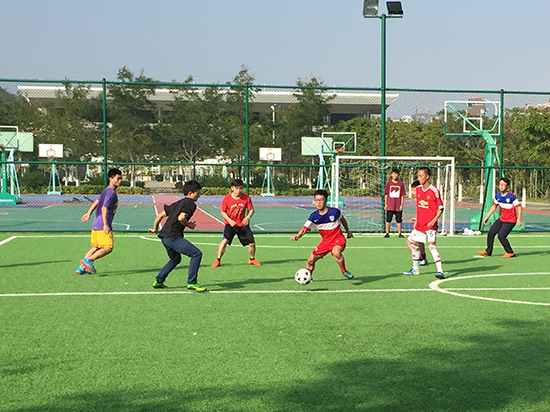 15级环科2班足球队与15级给排水1班足球队13日中午12:40于五人制足球场上展开比赛。双方队员意气风发,各个卯足了劲,两队实力相当,为了角逐本次比赛的胜利,他们都丝毫不敢懈怠。在热身完后,双方对战开始。