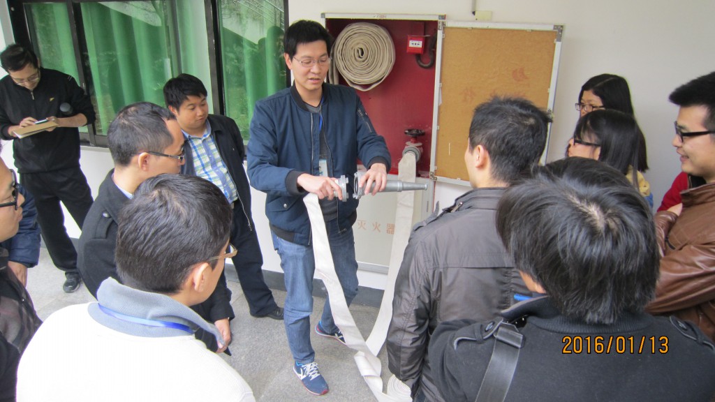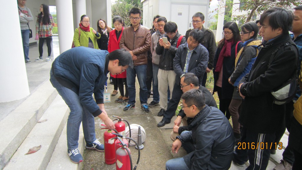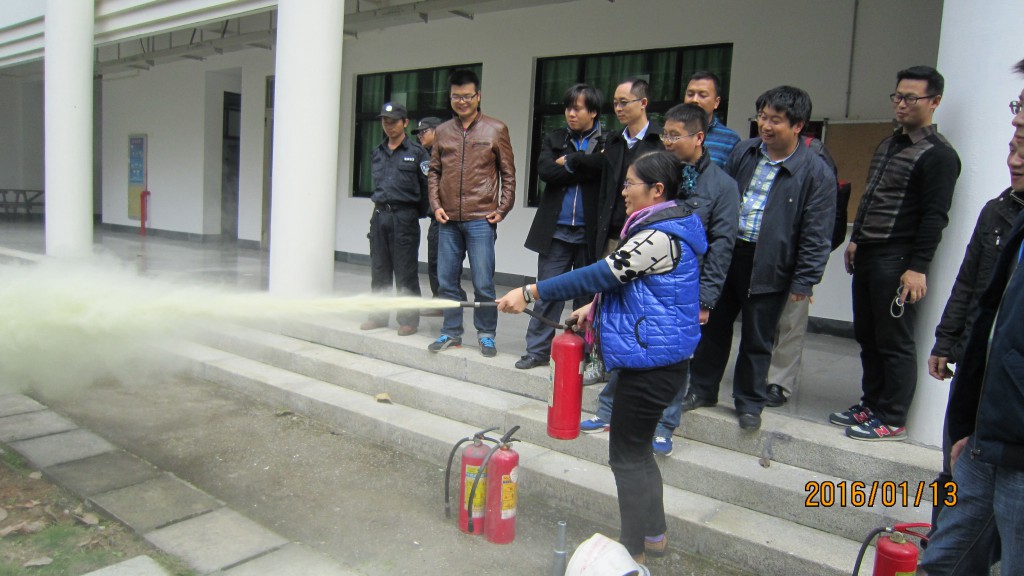 隐患险于明火,防范胜于救灾,高校实验室的消防工作关系到老师和同学们的人身安全,是需要长期贯彻执行的重要工作,卢昌义主任对此特别重视,继邀请保卫部雷部长作实验室安全管理工作指导后,此次又邀请保卫部的陈超老师为我系讲解实验室消防器材的使用,并现场指导老师们使用消防器材。老师们认真地听取陈超老师对干粉灭火器和消防栓使用的讲解,并通过实地操作,真正的了解了灭火器和消防栓的使用。
