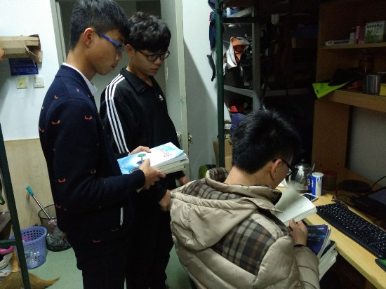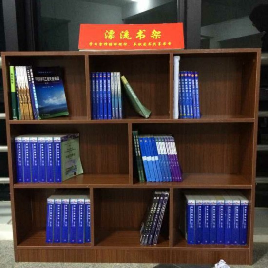 在同学们的爱心支持下,我系青队队员们成功地搜集了各类专业书籍共81本。其中不乏《水力学实验教程》、《水工程测量》、《现代仪器分析》……对我系的专业课修读有巨大帮助的书籍。此后为了让这些书籍有一个舒适的“家”,青队队员们还前往生化楼C#4楼完成了“漂流书架”的安装,在这些“小雷锋”默契的配合下,一个精致实用的棕色书架展现在大家面前。看着书籍在书架上整齐摆放,“小雷锋”们露出开心的笑容。