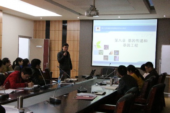 首先是黄金阳老师给大家带来关于水的预处理的内容。主要讲述了格栅在污水处理中的应用,其可以截流住水中的悬浮物。另外还介绍了格栅的类型,人工清渣、机械清渣的方法,演示了格栅工作的动画。卢主任在给予黄金阳老师肯定的同时,也给出点评希望讲演中可适当增加视频的部分,让大家更容易理解内容。其次,金亮老师讲述的是关于基因传递与基因工程的内容,开头用美国官方批准的第一种转基因宠物——斑马鱼引入正题。为大家阐述了基因传递的类型和意义,以及基因重组的类型和转化机制等内容。