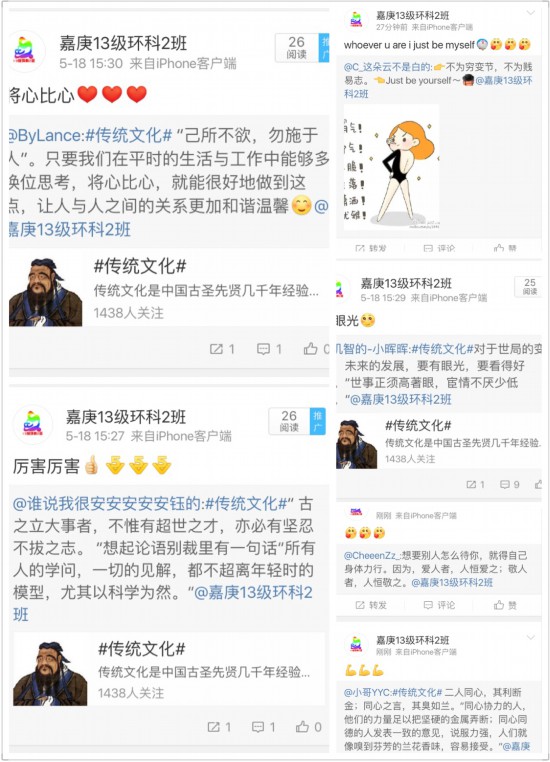 目前,该团支部超过一半的同学已参与到微博话题的讨论,期待更多的环科学子参与活动,用实际行动弘扬中国传统文化。
