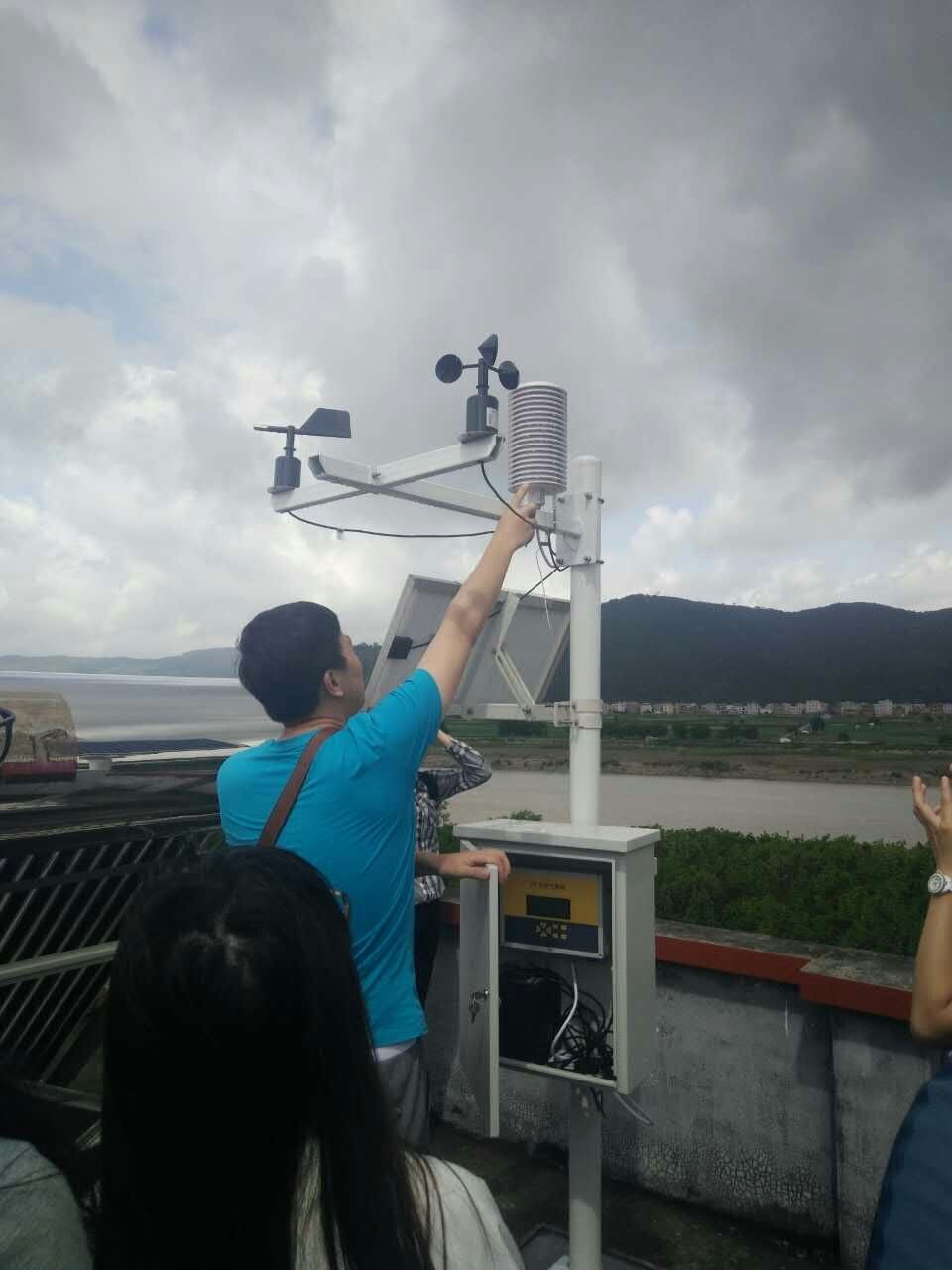 到达溪山村,我们前往一户农家的屋顶,向志愿者分析种植的地形、普及红树林的知识后进行了合理的任务分配。环科系在此设立了自动气象站,金亮老师耐心地向我们介绍了这个气象站的功能和作用。不少同学表示还是第一次接触到这种设备,有点新奇。