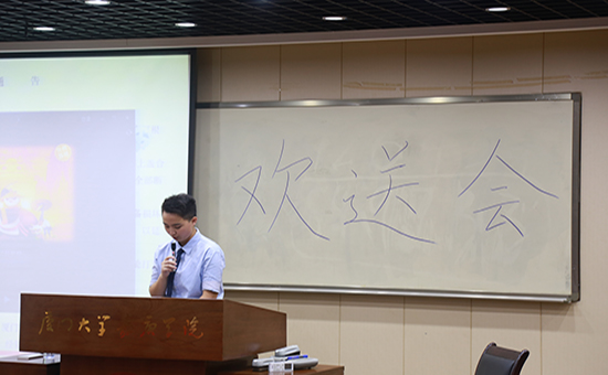 欢送会一开始,首先播放了第八届团学会各部门新晋部长们为自己的老部长们拍摄的视频,视频中他们以不同的形式表达了对老部长们的感谢,视频内容别出心裁,一下子温暖了现场的气氛。然后进入聘书颁发仪式,先是由李超老师为第七届主席团的成员们颁发聘书,而后由第七届主席团成员依次为各部门老部长们颁发聘书,嘉奖这一年他们为部门的辛勤耕耘。