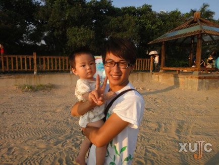 大一时,参加“Green Style”暑期实践队。在一次的横幅签名宣传活动中,一些前来签名的参与者连自己的名字都还不会写,但他们积极地留下可爱的涂鸦。当时的场景让蔡英杰感触良多,环保要从小做起。图为蔡英杰与最小参与者的合影。