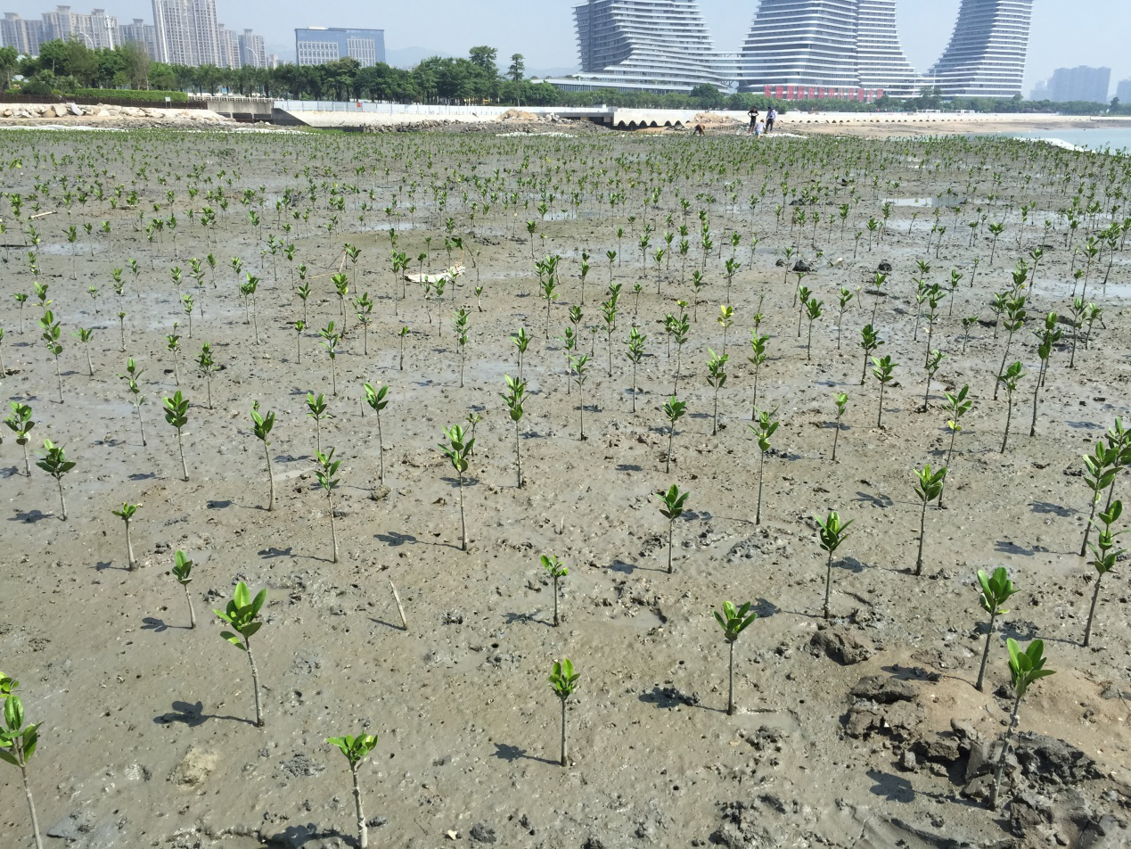 4月种植的小苗们,经过3月的洗礼,已渐渐长出叶枝,随着时间的推移,我们又补充了一些拉关木、秋茄、白骨壤、无瓣海桑,望着长出的红树林,我们心生欣慰。小心翼翼将苗取出,用铲子挖出一块黑泥,将无瓣海桑放入并填埋好,便等待它们的成长。