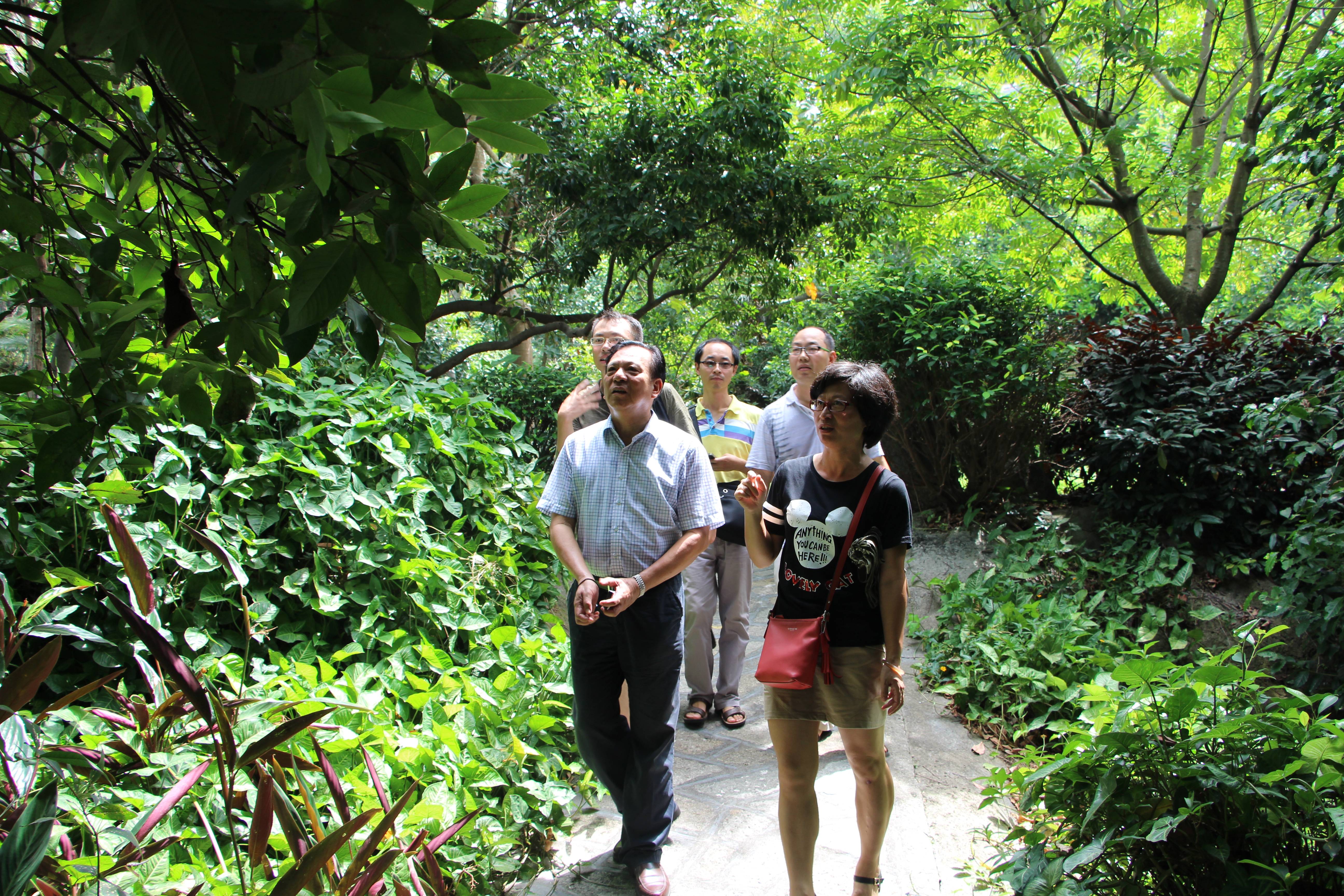 会谈过后,康龙泉主任与引种园的刘韶松博士刘育梅博士陪同卢昌义院长一行考察了引种园的观赏植物区、果用药用植物区及实习生/研究生公寓。