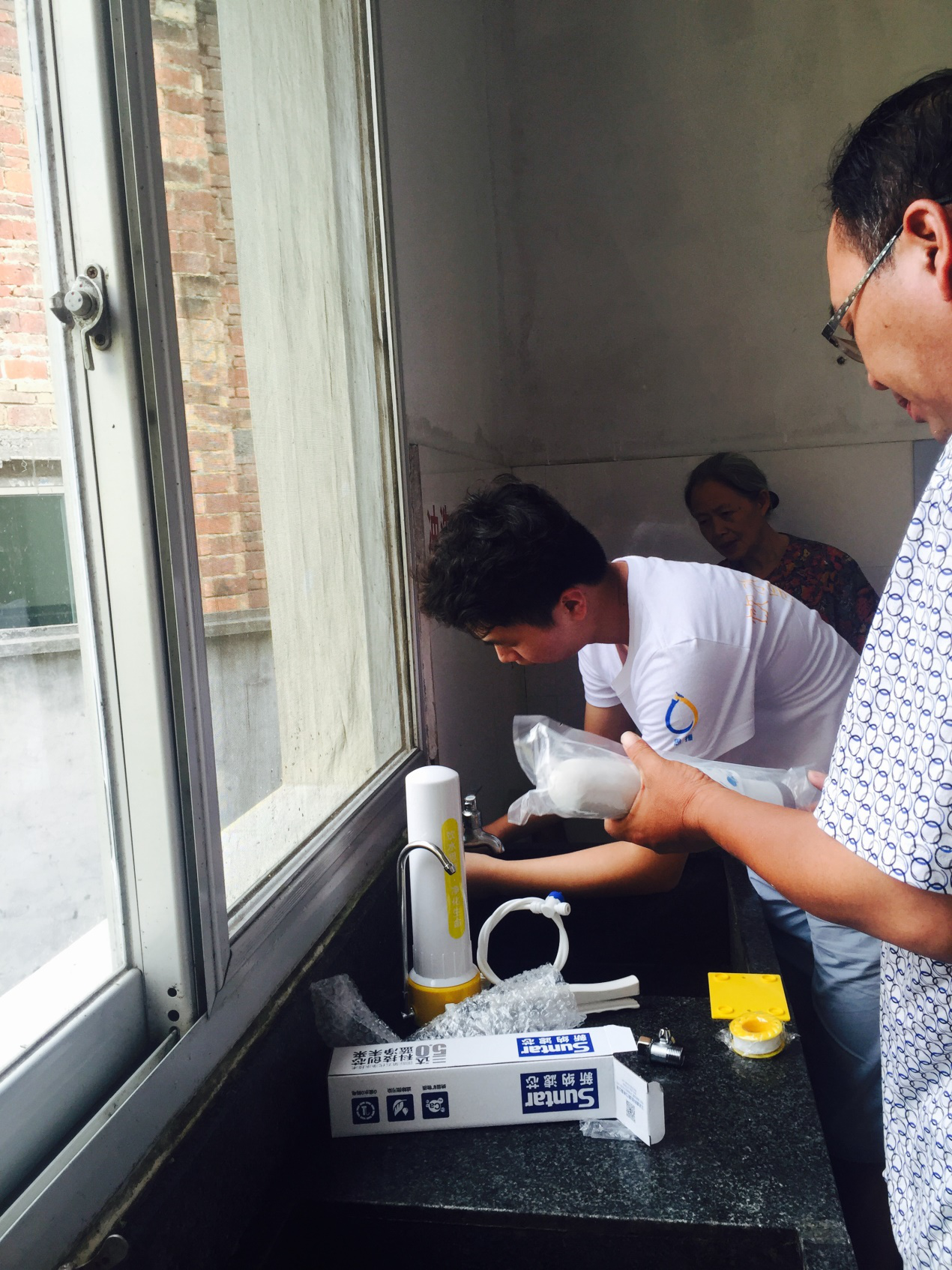 后来厦门大学嘉庚学院绿创Green Wall团队代表陈浩同学应邀代表团队,参与思援环保8月8日-10日为期3天的贫困山区公益行动,深入福建宁德屏南考察调研中小学饮用水安全,并会合当地义工组织,完成捐赠净水器的安装调试。