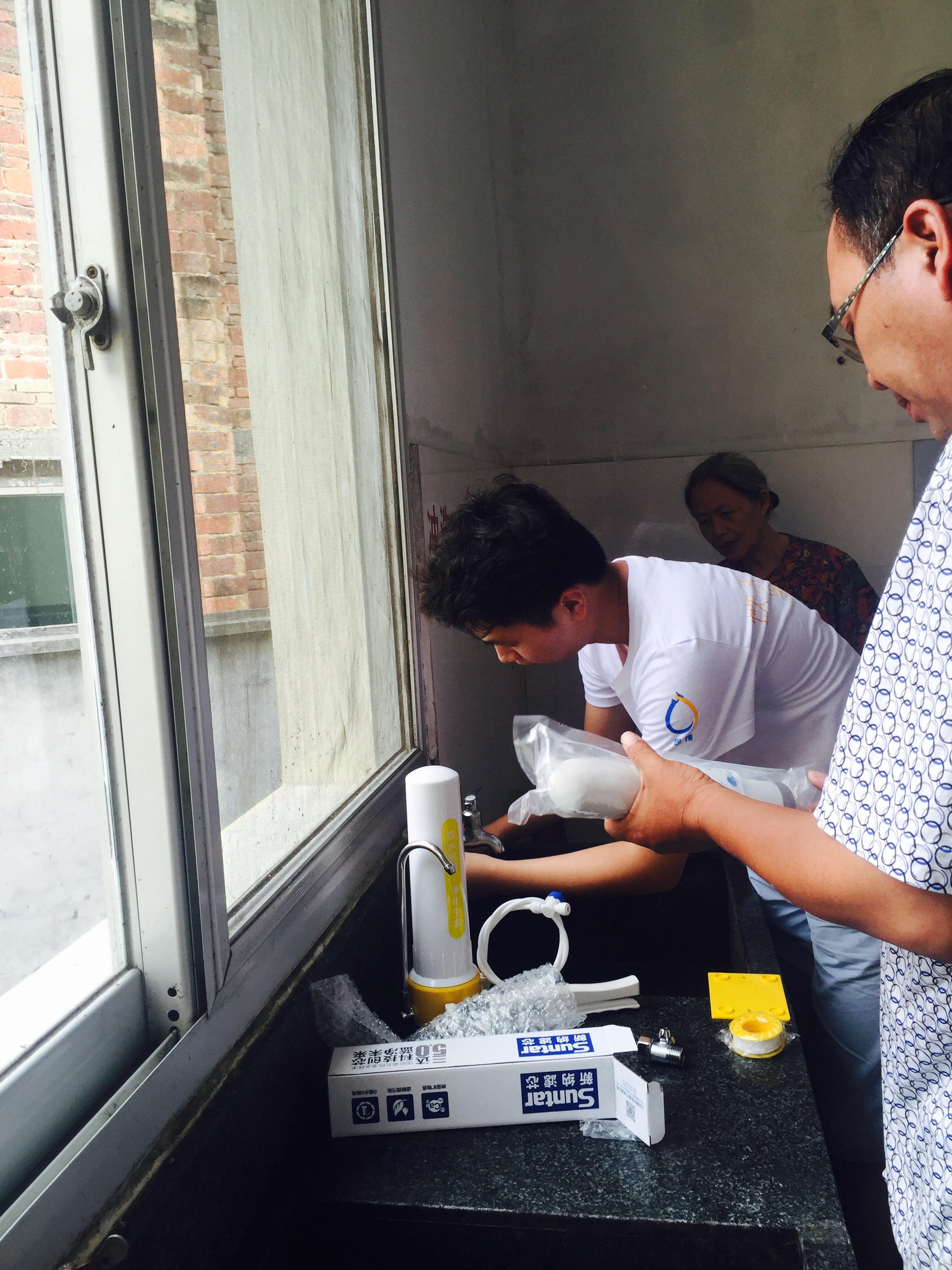 在活动中,绿创Green Wall团队成员负责安装净水器、水质检测、GPS定位等工作。