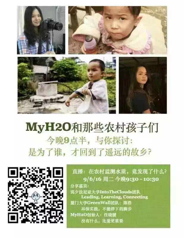 厦门大学嘉庚学院绿创Green Wall团队受邀参加了MyH2O直播分享。MyH2O由中国青年应对气候变化行动网络(CYCAN)联合美国麻省理工学院共同发起,并获得美国国家地理空气与水保护基金的支持。项目旨在通过建立一个公众平台来帮助中国居民,尤其是农村居民了解自身饮用水和地表水的健康情况,提高居民对水质健康的关注度并增加水质信息公开的透明度。