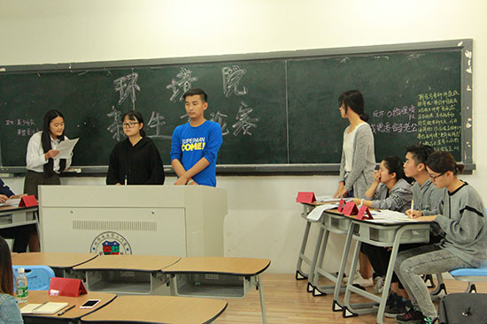 2016年10月13日中午12点30分在公一大楼218教室举办了以“唐僧和猪八戒谁更适合当老公”为辩题的环境院新生辩论赛。正方“美少女队”的观点是唐僧更适合当老公,反方“O给哩�队”的观点是猪八戒更适合当老公。本次比赛由辩论队队长冯岩、队员周秀茵、孙川惠担任评委。