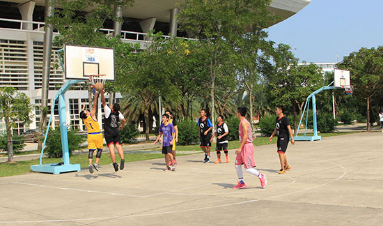 经过短暂的休息过后,第三节比赛开始。16级环科1班的同学们奋起直追,凭借不言弃的心态以及默契的配合连连进球,打出一波小高潮,缩小了比分差距。16级环科1班的主力队员在14级给排水队员的围堵下佯装突破,突然在线外直接干拔跳投出手,投入一个涨士气的三分球。第三节比赛以36:48的比分结束,14给排水稍稍领先。