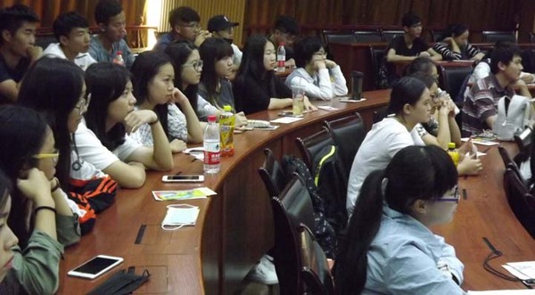 讲座中,沈振海会长运用多年研究党史红军经验与知识积累,为同学们生动形象的讲述了红军长征的历史与精神。长征精神是什么:1、艰苦,一路上爬雪山过草地,还要躲避敌人的几次反围剿。人困马乏,饭都吃不上,很多时候只能啃树皮喝马尿。对比:当前物质条件好,不少人纸醉金迷铺张浪费的行为。2、务实,不逞一时意气,而是认清现实。发现敌我力量对比悬殊,就转移阵地到敌人薄弱的地方发展。对比:当前社会上好大喜功,不实事求是,讨论问题夸夸其谈不落实的风气。3、坚持,长征坚持了两年,走了两万五千里,穿越了大半个中国,最终到达陕北时的队伍人数变成出发时的十分之一。但整个过程中没有动摇投降,也没有放弃希望,才得以保存最终的革命火种。对比:当代不少大学生喊苦喊累,遇到点小挫折要么逃避要么放弃。他富有感情的讲述,使同学们对红军前赴后继、不怕牺牲的长征精神有了更深刻的理解,同学们聆听过程中时不时做着笔记。讲座的最后,沈会长动情地说到:“我们应做的是牢记红军精神,弘扬长征精神,走好我们这一代的长征路。我们这一代的长征目标,就是伟大复兴中国梦的实现!”